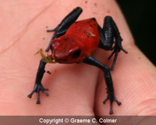 Strawberry poison dart frog (Dendrobates pumilio)The Strawberry poison dart frog is found in central America, mainly in Costa Rica.