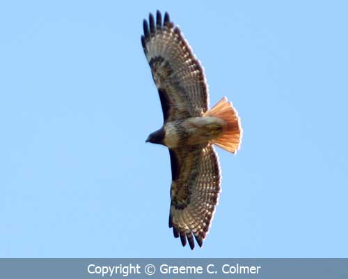 The Red-tailed hawk is a bird of prey and one of the most common in North America. It breeds throughout most of North America, from western Alaska and northern Canada to as far south as Panama and the West Indies. IdentificationAdultsAdult male and female Red-tailed hawks are similar in appearance other than the female being larger. They have broad, rounded wings and a short, wide tail. They are rich brown above and pale below, with a streaked belly and, on the wing underside, a dark bar between shoulder and wrist. The tail is usually pale below and cinnamon-red above. ImmatureImmature birds are similar to adults except the tail is brown and banded. GalleryRelated Page Hierarchy Kingdom: Animalia (animals) Class: Aves (birds) Family: Accipitridae (hawks, eagles) Red-tailed hawk (Buteo jamaicensis) |