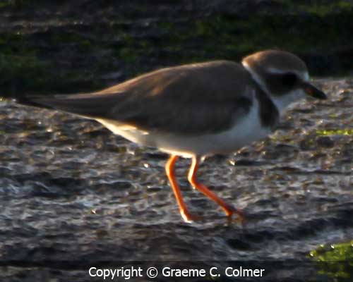 The Semipalmated plover is a small shorebird of the plover family. They breed across northern Canada and Alaska. In winter they migrate to coastal areas ranging from the United States to Patagonia. IdentificationAdultsThe male and female Semipalmated plover are similar in appearance. They have grey-brown back and wings, a white belly, and a white breast with one black neckband. They have a brown cap, a white forehead, a black mask around the eyes, a short orange and black bill and long yellow legs. ImmatureImmature birds are similar to adults but with duller markings and pale scaling on back. GalleryRelated Page Hierarchy Kingdom: Animalia (animals) Class: Aves (birds) Order: Charadriiformes (shorebirds) |