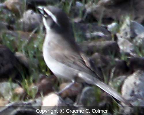 The Black-throated sparrow is a small passerine bird in the American sparrow family. It is primarily found in the open deserts of southwestern United States and Mexico. IdentificationAdultsAdult male and female black-throated sparrows are similar in appearance. They have a gray body with black throat and a distinctive black and white head pattern. They have white tips to outer tail feathers. ImmatureImmature birds are similar in appearance to adults but without the black throat and with dusky streaks and spots across chest. GalleryRelated Page Hierarchy Kingdom: Animalia (animals) Class: Aves (birds) Family: Emberizidae (American sparrows) Black-throated sparrow (Amphispiza bilineata) |