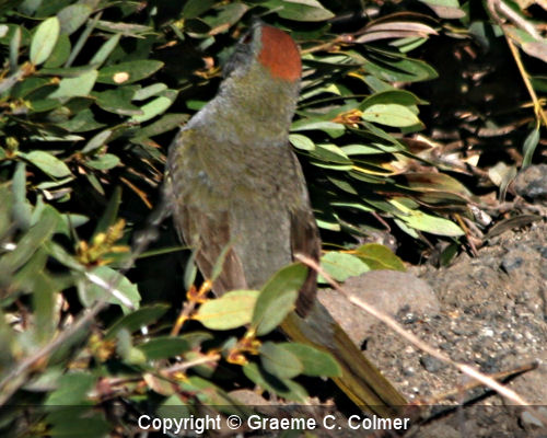 The Green-tailed towhee is the smallest towhee. It can be found in most of the Western United States, south to Mexico. IdentificationGreen-tailed towhees are often unseen because of its tendency to stay hidden under bushes. AdultsBoth male and females have bright green stripes on the edge of its wings, white throat patch and rufous crown. ImmatureJuveniles are brown and white streaked with a yellowish wash on their wings. GalleryRelated Page Hierarchy Kingdom: Animalia (animals) Class: Aves (birds) Family: Emberizidae (American sparrows) Green-tailed towhee (Pipilo chlorurus) |