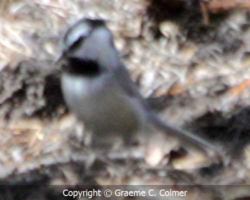 Adult male and female mountain chickadees are similar in appearance. They have a gray body with striking black and white on the head. The white stripe over the eye differentiates Mountain Chickadees from all other chickadees.