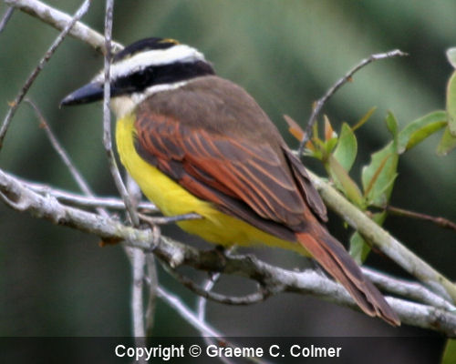| SpeciesAnimaliaChordataAvesPasseriformesTyrannidaeGreat kiskadee (Pitangus sulphuratus) | ||||||||||||||||||