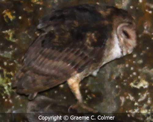 The barn owl is the most widely distributed species of owl, and one of the most widespread of all birds found anywhere except the polar and desert regions. IdentificationAdultsThe adult male and female barn owl are similar in appearance. They area a medium-sized owl with white or mostly white underside, heart-shaped, white face. The upperparts are back tawny, marked with black and white spots. They have long legs, dark eyes, and a round head without ear tufts. ImmatureImmature birds are similar in appearance to the adult. GalleryRelated Page Hierarchy Kingdom: Animalia (animals) Class: Aves (birds) Order: Strigiformes (owls) Family: Tytonidae (barn-owls) Barn owl (Tyto alba) |
