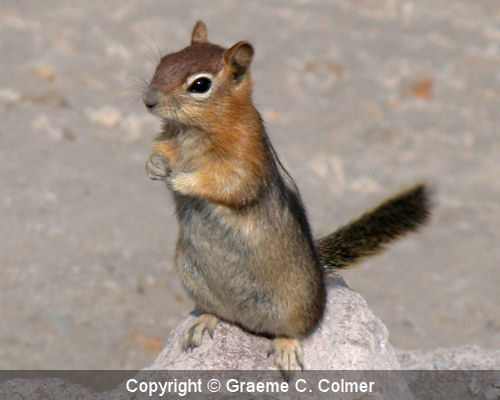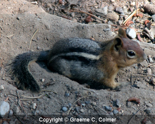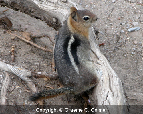 Golden-mantled ground squirrel (Spermophilus lateralis)The golden-mantled ground squirrel is a type of ground squirrel that may be found in all types of forests across North America. IdentificationThe Golden-mantled ground squirrel is similar in appearance to chipmunk's stripes and coloration, but unlike chipmunks, it lacks any facial stripes. GalleryRelated Page Hierarchy Kingdom: Animalia (animals) Class: Mammalia (mammals) Order: Rodentia (rodents) Groove-toothed flying squirrel (Aeretes melanopterus) Black flying squirrel (Aeromys tephromelas) Thomas's flying squirrel (Aeromys thomasi) Harris's Antelope Squirrel (Ammospermophilus harrisii) San Joaquin Antelope Squirrel (Ammospermophilus nelsoni) White-tailed Antelope Squirrel (Ammospermophilus leucurus) Texas Antelope Squirrel (Ammospermophilus interpres) Insular Antelope Squirrel (Ammospermophilus insularis) Hairy-footed flying squirrel (Belomys pearsoni) Namdapha flying squirrel (Biswamoyopterus biswasi) Gunnison's prairie dog (Cynomys gunnisoni) White-tailed prairie dog (Cynomys leucurus) Mexican prairie dog (Cynomys mexicanus) Utah prairie dog (Cynomys parvidens) Kashmir flying squirrel (Eoglaucomys fimbriatus) Woolly flying squirrel (Eupetaurus cinereus) Siberian chipmunk (Eutamias sibiricus) Southern flying squirrel (Glaucomys volans) Particolored flying squirrel (Hylopetes alboniger) Afghan flying squirrel (Hylopetes baberi) Bartel's flying squirrel (Hylopetes bartelsi) Kashmir flying squirrel (Hylopetes fimbriatus) Gray-cheeked flying squirrel (Hylopetes lepidus) Palawan flying squirrel (Hylopetes nigripes) Indochinese flying squirrel (Hylopetes phayrei) Gray-cheeked flying squirrel (Hylopetes platyurus) Sipora flying squirrel (Hylopetes sipora) Red-cheeked flying squirrel (Hylopetes spadiceus) Sumatran flying squirrel (Hylopetes winstoni) Javanese flying squirrel (Iomys horsfieldi) Mentawi flying squirrel (Iomys sipora) Alpine marmot (Marmota marmota) Gray marmot (Marmota baibacina) Bobak marmot (Marmota bobak) Alaska marmot (Marmota broweri) Hoary marmot (Marmota caligata) Black-capped marmot (Marmota camtschatica) Long-tailed marmot (Marmota caudata) Himalayan marmot (Marmota himalayana) Menzbier's marmot (Marmota menzbieri) Woodchuck (Marmota monax) Olympic marmot (Marmota olympus) Tarbagan marmot (Marmota sibirica) Vancouver Island marmot (Marmota vancouverensis) Central American dwarf squirrel (Microsciurus alfari) Amazon dwarf squirrel (Microsciurus flaviventer) western dwarf squirrel (Microsciurus mimulus) Santander dwarf squirrel (Microsciurus santanderensis) Alpine chipmunk (Neotamias alpinus) Buller's chipmunk (Neotamias bulleri) Gray-footed chipmunk (Neotamias canipes) Gray-collared chipmunk (Neotamias cinereicollis) Cliff chipmunk (Neotamias dorsalis) Durango chipmunk (Neotamias durangae) Merriam's chipmunk (Neotamias merriami) Least chipmunk (Neotamias minimus) California chipmunk (Neotamias obscurus) Yellow-cheeked chipmunk (Neotamias ochrogenys) Palmer's chipmunk (Neotamias palmeri) Panamint chipmunk (Neotamias panamintinus) Colorado chipmunk (Neotamias quadrivittatus) Red-tailed chipmunk (Neotamias ruficaudus) Hopi chipmunk (Neotamias rufus) Allen's chipmunk (Neotamias senex) Siskiyou chipmunk (Neotamias siskiyou) Sonoma chipmunk (Neotamias sonomae) Townsend's chipmunk (Neotamias townsendii) Uinta chipmunk (Neotamias umbrinus) Lesser Pygmy flying squirrel (Petaurillus emiliae) Hose's Pygmy flying squirrel (Petaurillus hosei) Selangor Pygmy flying squirrel (Petaurillus kinlochii) Red And White Giant flying squirrel (Petaurista alborufus) Spotted Giant flying squirrel (Petaurista elegans) Hodgson's Giant flying squirrel (Petaurista magnificus) Bhutan Giant flying squirrel (Petaurista nobilis) Indian Giant flying squirrel (Petaurista philippensis) Chinese Giant flying squirrel (Petaurista xanthotis) Japanese Giant flying squirrel (Petaurista leucogenys) Red Giant flying squirrel (Petaurista petaurista) Basilan flying squirrel (Petinomys crinitus) Travancore flying squirrel (Petinomys fuscocapillus) Whiskered flying squirrel (Petinomys genibarbis) Hagen's flying squirrel (Petinomys hageni) Siberut flying squirrel (Petinomys lugens) Mindanao flying squirrel (Petinomys mindanensis) Arrow flying squirrel (Petinomys sagitta) Temminck's flying squirrel (Petinomys setosus) Vordermann's flying squirrel (Petinomys vordermanni) Siberian flying squirrel (Pteromys volans) Japanese flying squirrel (Pteromys momonga) Smoky flying squirrel (Pteromyscus pulverulentus) Pale Giant squirrel (Ratufa affinis) Black Giant squirrel (Ratufa bicolor) Indian Giant squirrel (Ratufa indica) Grizzled Giant squirrel (Ratufa macroura) Tufted Ground squirrel (Rheithrosciurus macrotis) Neotropical Pygmy squirrel (Sciurillus pusillus) Pere David's Rock Squirrel (Sciurotamias davidianus) Forrest's Rock Squirrel (Sciurotamias forresti) Abert's squirrel (Sciurus aberti) Brazilian squirrel (Sciurus aestuans) Allen's squirrel (Sciurus alleni) Persian squirrel (Sciurus anomalus) South Yungas red squirrel (Sciurus argentinius) Arizona gray squirrel (Sciurus arizonensis) Mexican gray squirrel (Sciurus aureogaster) Collie's squirrel (Sciurus colliaei) Deppe's squirrel (Sciurus deppei) Fiery squirrel (Sciurus flammifer) Yellow-throated squirrel (Sciurus gilvigularis) Red-tailed squirrel (Sciurus granatensis) Bolivian squirrel (Sciurus ignitus) Northern Amazon red squirrel (Sciurus igniventris) Atlantic Forest squirrel (Sciurus ingrami) Japanese squirrel (Sciurus lis) Mexican fox squirrel (Sciurus nayaritensis) Eastern fox squirrel (Sciurus niger) Peters's squirrel (Sciurus oculatus) Richmond's squirrel (Sciurus richmondi) Andean squirrel (Sciurus pucheranii) JunÃn Red Squirrel (Sciurus pyrrhinus) Guayaquil squirrel (Sciurus stramineus) Sanborn's squirrel (Sciurus sanborni) Southern Amazon red squirrel (Sciurus spadiceus) Yucatan squirrel (Sciurus yucatanensis) Variegated squirrel (Sciurus variegatoides) Eurasian red squirrel (Sciurus vulgaris) Spermophil