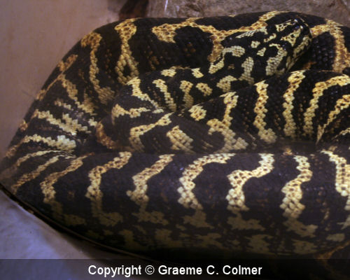 | SpeciesAnimaliaChordataReptiliaSquamataPythonidaeCarpet/diamond python (Morelia spilota) | ||||||||||||||||||